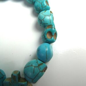 Skull Holy Cross Faith Death Life Faux Turquoise Round Karma Beaded Bracelet