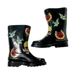 Skull Rain Boots Rock & Roll Roses Lucky Boots Chooka Black Unisex Kids Size 10