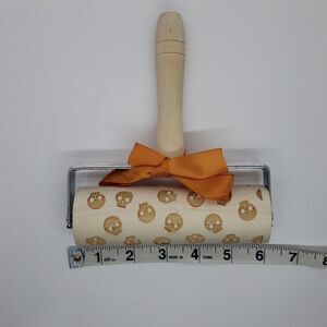 Bake your favorite dessert and make it extra spooky with this wooden skull imprinted rolling pin. 6" long by 1.5" wide makes this kitchen staple big enough to get the job done while not taking up too much space in your kitchen drawers. Use for Halloween baking or year round!