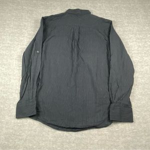 Skully Mens Shirt Black & White Pinstripe Pocketed Pearl Snap Button Down Sz. M