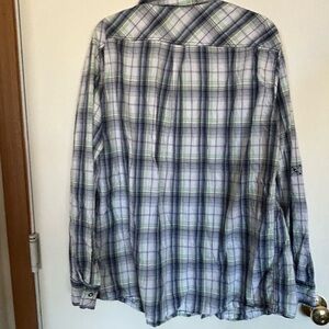 Skully XXL men’s button-down plaid/equestrian/western with rolls have sleeves