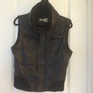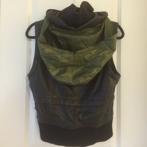 Hard to give this one up! This classic black moto jacket converts to a vest with 2 swipes of a zipper or adds a hood within 10 seconds. Skunkfunk Hilargi Jacket Size 2. Made in Spain.