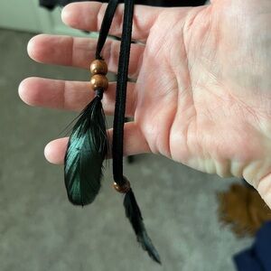 Sky Black Tank W Laced down back w beads and feathers. Size L New Without Tags