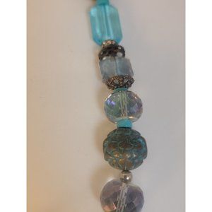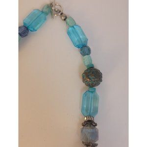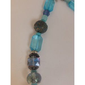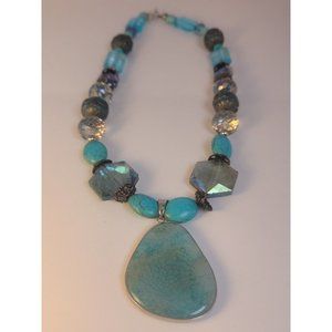 Sky Blue Agate Glass And Turquoise Colored Stones Silver Tone Necklace