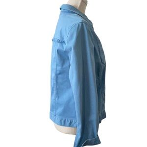 Sky Blue Chico’s Denim Jacket with Fraying Boho Chic Festival StyleSize S