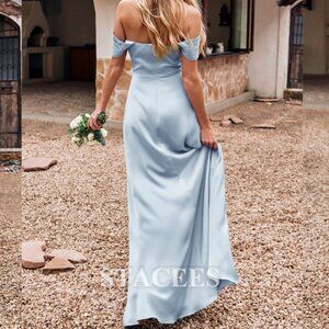Sky Blue Off-the-Shoulder Bridesmaid Dress