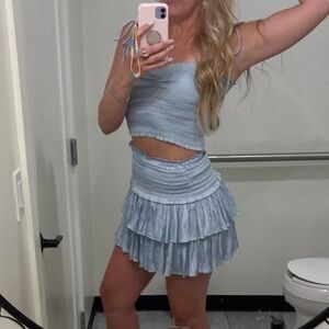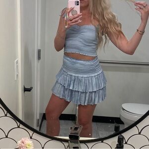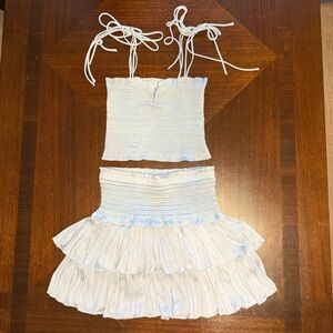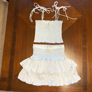 Chic sky blue ensemble set with ruffled skirt and smocked top. Ideal for a stylish outing. Such a cute set! Top is a medium and so is the skirt. True to size. Worn only once for 4th of July! Gently loved. Make an offer! Bundle up and save ๐