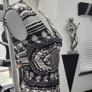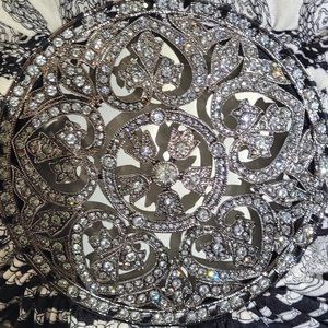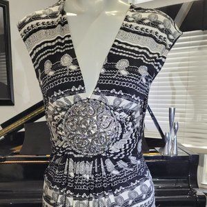 S Sky Brand with Gorgeous Crystal Medallion top l, Beautiful Black and white print, resembles Versace print, Medallion full of Crystals. Worn once
