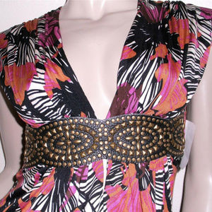 Sky Brand Printed Belted Sleeveless Stretch Top XS