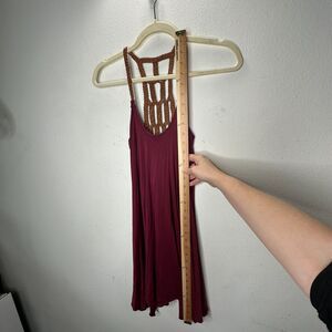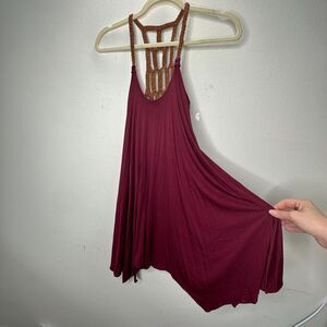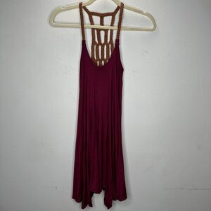 Sky Burgundy Scoop Neck Hand Braided Leather Design Back Strap Flowy Dress XS
