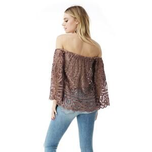 Sky Clothing Brand NWT S Off Shoulder Lace Floral Embroidered Taupe Brown Nude