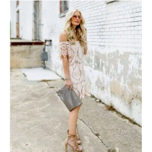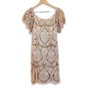 Tags: Boho, bohemian, lace dress, crochet, crochet dress, cocktail dress, evening dress, nude dress, wedding guest