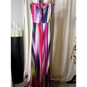 Sky Multi Color Halter Tie Long Maxi Dress Medium
