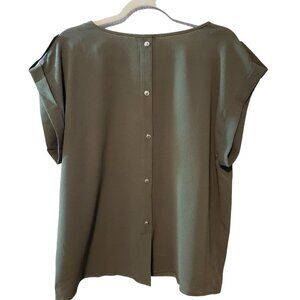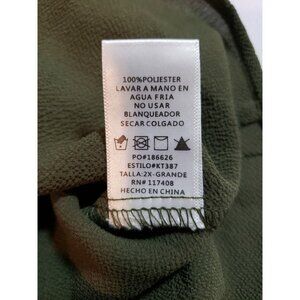 Sky Plus Womens Olive Button-Back 2X Blouse With Pocket & Shoulder Detail
