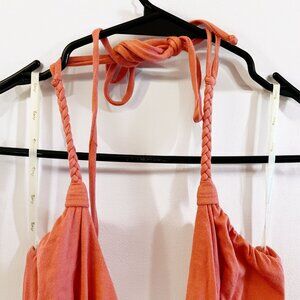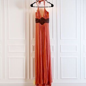 Sky | S | Hidalia Melon Coral/Peach Maxi Dress | Braided Leather Waist | NWT