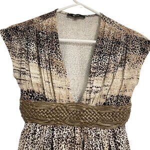 Sky Size Small Top Blouse Short Sleeve Belted Animal Print