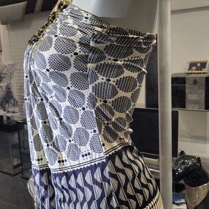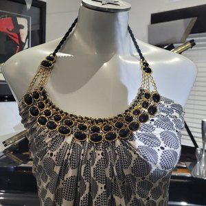 Sky Small, Black and beige top with a black and gold necklace attached. Beautiful pop to the top with the sewn on necklace. Worn once.