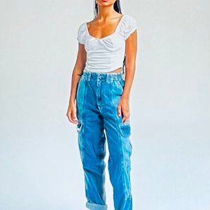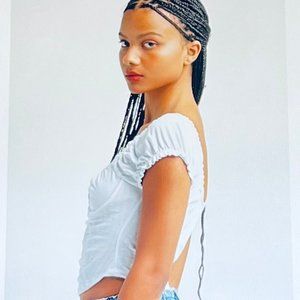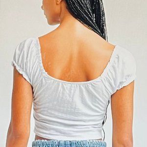 Sky & Sparrow Bustier Puff Sleeve Top in White (M) New With Tags