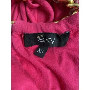 Sky Top Blouse Shirt Sleeveless Gold Chain Embellished Neck Pink Tie Strap XS