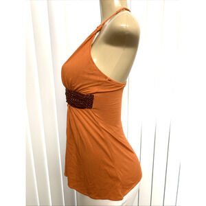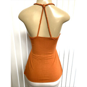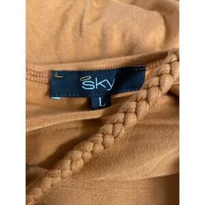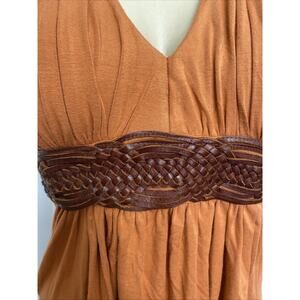 Sky Top Blouse Sleeveless Leather Belt Embellished Orange Brown V Neck Braided L