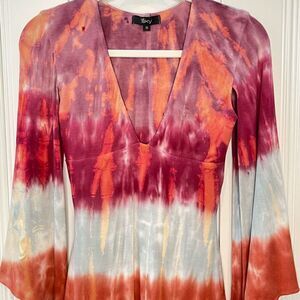 Sky Women’s Small Eliska Fire Striped Mini Dress 3/4 Sleeve Deep Cut USA