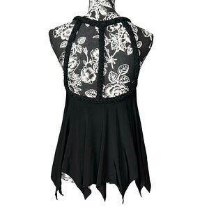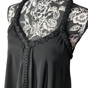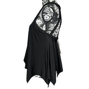 Sky, Y2K, Braided Strap, Handkerchief Hem, Trapeze Tank, Black Top, NWT, Rayon Spandex, Boho, Soft, Stretchy, Lined, Statement Top, Festival, Early 2000s, Unique Detail, Small, Versatile