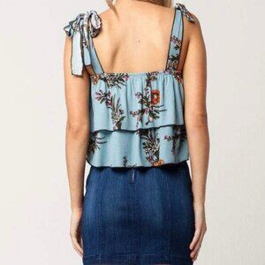 Sky and Sparrow Blue Floral Ruffle Tier Tie Top
