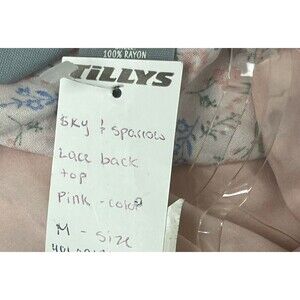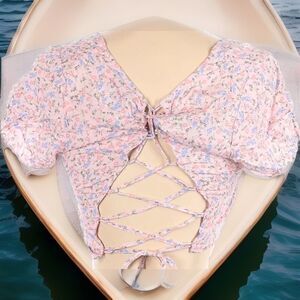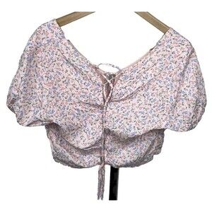 Sky and Sparrow Tillys Top Crop Puff Sleeves Lace Up Back Pink Floral Medium