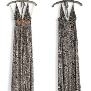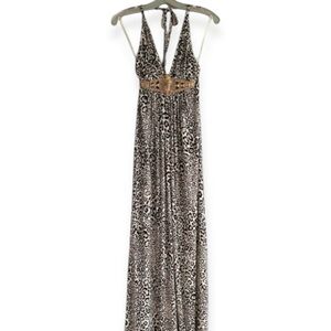 Sky brand dress Rhinestone Beaded Leopard Print Maxi Dress XS NWT