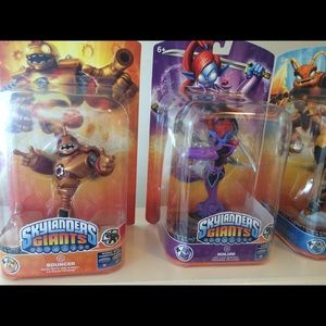 Eye brawl, ninjini, hot head, bouncer, thumpback, swarm, crusher. These are the giant figurines only no game. The Giants are bigger than the normal figurines and have more power in the Giants game retail for $75 listing at $42 will sell at $38 great for Christmas and just in time