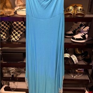 Sky strapless Blue Maxi/High Low Dress with Lace Detail large