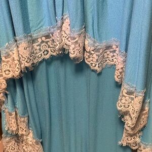 Chic blue maxi/high low dress with elegant lace accents. Perfect for stylish outings or any summer event! Worn maybe 2-3x. SUPER flattering. Large