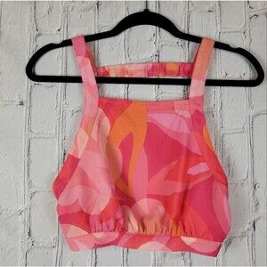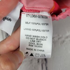 Tags: bright hot barbie barbiecore pink orange hued abstract pattern, sleeveless, cropped, open cutout back, elastic waistband, neckline, lined, lining, boutique
