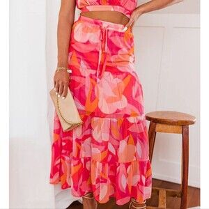 Sky to Moon Hot pink bungalow glow straight neck crop top midi maxi skirt set