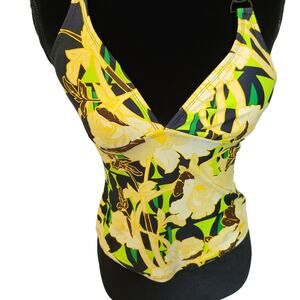 Shop the trend with this bright and beautiful Skye Yellow Floral Halter Style Tankini Top in black Hipster Bottoms.