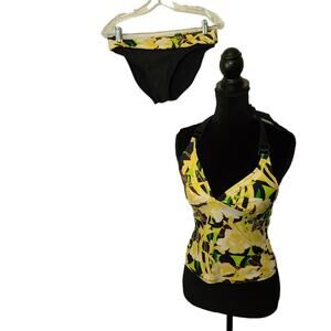 Skye Yellow Floral Plunging Tankini Set With Hipster Black Bikini Bottoms SP