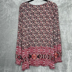 Skyes The Limit 3X Shirt Top Red Floral Flower Peasant Long Sleeve V Neck
