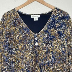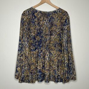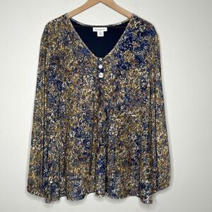 Skye's The Limit Womens Peasant Blouse 1X Blue Brown Floral Tiered Balloon Boho