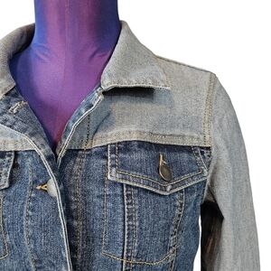 In excellent condition Skye's the Limit Light & Medium Wash Colorblock Denim Jean Jacket Size Small Women's.