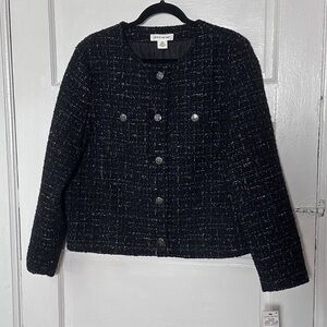 Skye's the Limit NWT Women’s Black Tweed Blazer Jacket Sz 12 Classic Preppy Y2K