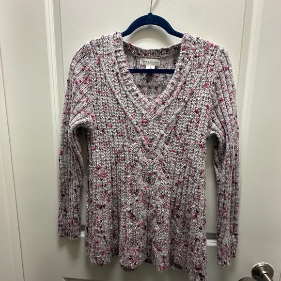 Skye's the Limit Pink and Gray V-Neck Sweater