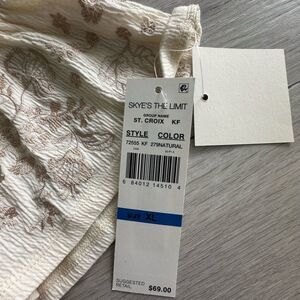 Skye’s the Limit St. Croix Crinkle Embroidered Blouse Natural XL NWT IN PACKAGE