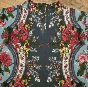 Beautiful fall floral blouse. Stretchy collar and cuff.