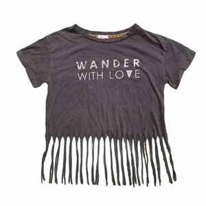 Skylar + Fade Cropped Gray Fringe Wander with Love T-Shirt Size M