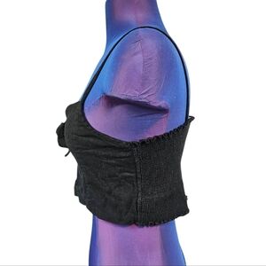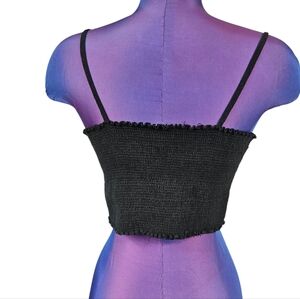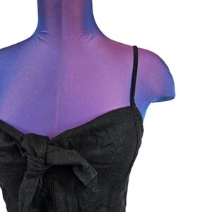 Skylar + Madison Black Linen Blend Tie Front Smocked Back Crop Top Large E40