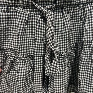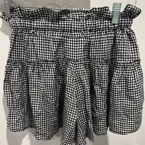 Skylar + Madison Chic ruffle gingham shorts in classic black and white. Tie Front with elastic. Perfect for casual outings or a stylish day at work. Size S.