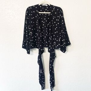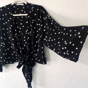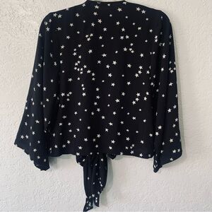 Skylar & Madison Night Sky Stars Print Wrap Blouse Flowy Sleeves