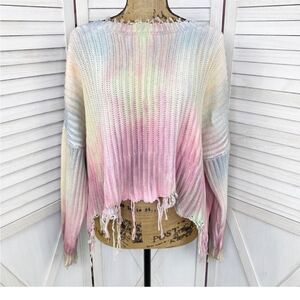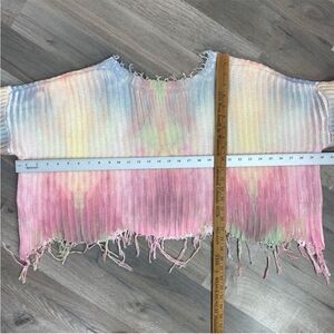 Boho Distressed Fringe Streetwear Cropped Tie dye Pullover Grunge Casual Chunky knit Raw Destructed Pastel Rainbow Colorful Destroyed Layer Shredded Beach Punk