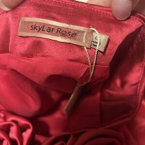 Skylar Rose NWT Asymmetrical Ruched Side Satin Mini Skirt Pink Women's Large non smoking home, Barbiecore super cute!