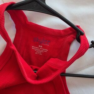 Skylee Collection Red Ribbed Halter Racerback Tank Top One Size OS